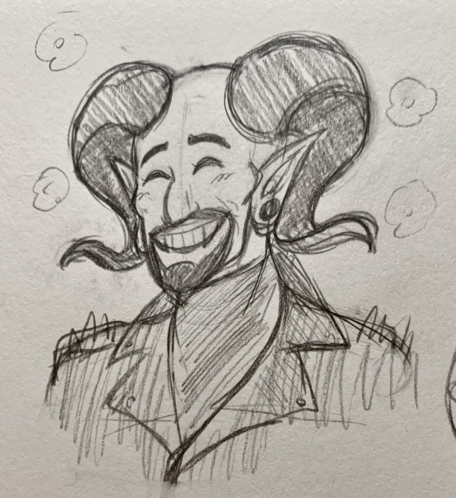 A manifestation of humankind's fears of Hell, temptation, and "sin". He is a charming man who, despite his origins, is moreso curious and amused by mankind than actively malicious towards them. He's a shapeshifter who likes to make deals and bets with people. While he has signed away many souls in his time, he never keeps them around for long after. He already had his fun watching them live their lives so he sends them on their merry way into what true afterlife awaits them. Overall a pretty chill guy.